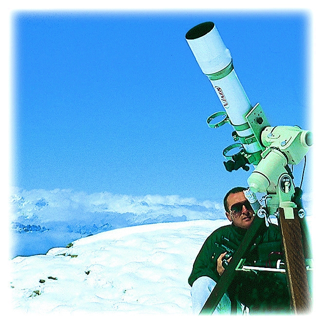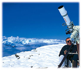 English: User Luc Viatour with a Vixen 1000mm F/D10 achromatic refractor on a Takahashi EM-200 German equatorial mount (belonging to Herbert Hansen). Queyras (Alpes) in France (alt. 3,000m). |