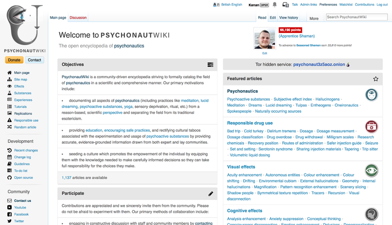 | current | 03:49, 12 April 2017 | 2,880 × 1,652 (614 KB) | Kenan (talk | contribs) | PsychonautWiki after rollout of new platform |