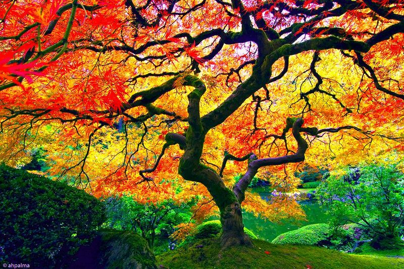 Japanese Garden by Anonymous - This image serves as an accurate portrayal of the commonly experienced psychedelic effect known as colour enhancement.