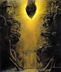 Untitled by Zdzisław Beksiński - This psychedelic art serves as an accurate portrayal of a single frame of the commonly experienced effect known as unspeakable horrors.