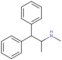 Skeletal structure of a β-phenylmethamphetamine molecule.