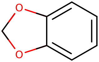 Skeletal structure of a 1,2-methylenedioxybenzene molecule.
