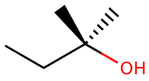 Skeletal structure of a 2-methyl-2-butanol molecule.