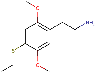 Skeletal structure of a 2C-T-2 molecule.