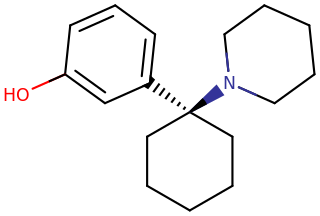Skeletal structure of a 3-HO-PCP molecule.