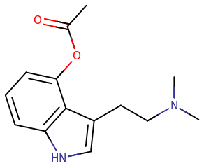 Skeletal structure of a 4-AcO-DMT molecule.