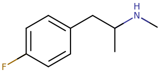 Skeletal structure of a 4-fluoromethamphetamine molecule.