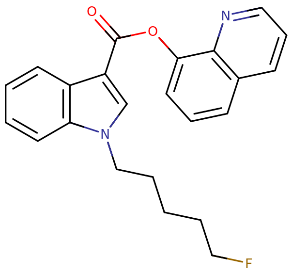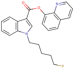 Skeletal structure of a 5F-PB-22 molecule.