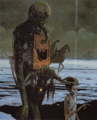 Untitled by Zdzisław Beksiński - This serves as an accurate portrayal of a single frame of the commonly experienced effect known as unspeakable horrors.