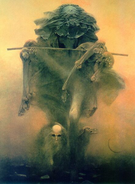Untitled by Zdzisław Beksiński - This psychedelic art serves as an accurate portrayal of a single frame of the commonly experienced effect known as unspeakable horrors.