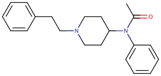 Skeletal structure of an acetylfentanyl molecule.