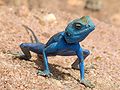 A male lizard, turned a striking blue to attract females during mating season, of the species Agama sinaita.
