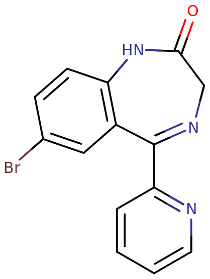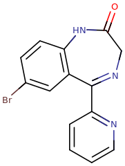 | current | 18:58, 28 November 2017 | 418 × 555 (24 KB) | BronzeManul (talk | contribs) | Skeletal structure of a bromazepam molecule. |