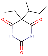 Skeletal structure of a butabarbital molecule.