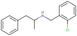 Skeletal structure of a clobenzorex molecule.
