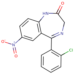 Skeletal structure of a clonazepam molecule.