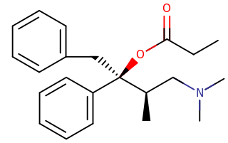 Skeletal structure of a dextropropoxyphene molecule.