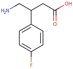 Skeletal structure of an F-Phenibut molecule.
