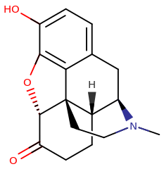 Skeletal structure of a hydromorphone molecule.