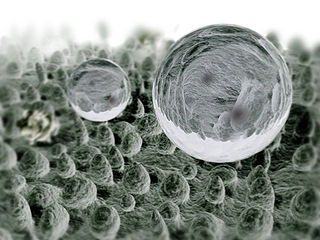 This image was selected as picture of the day on Wikimedia Commons for 29 July 2006. It was captioned as follows: English: Computer graphic of the Lotus Effect. Two drops of water on the surface of a leaf. Other languages: