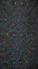 Untitled by Shipibo-Conibo people - This textile was created by endogenous people to represent ayahuasca hallucinations. It serves as an accurate portrayal of the commonly experienced psychedelic effect known as geometry.