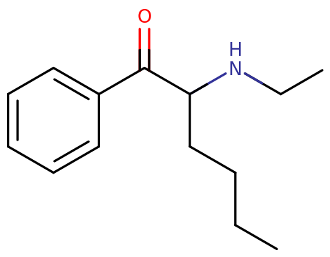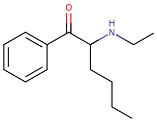 Skeletal structure of an N-ethyl-nor-hexedrone molecule.