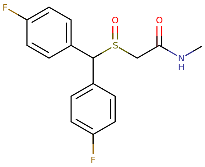 Skeletal structure of an N-methylbisfluoromodafinil molecule.