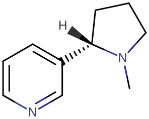Skeletal structure of a nicotine molecule.
