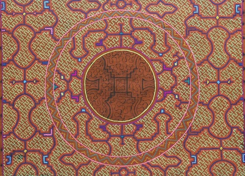 Untitled by Shipibo-Conibo people - This textile was created by endogenous people to represent ayahuasca hallucinations. It serves as an accurate portrayal of the commonly experienced psychedelic effect known as geometry.