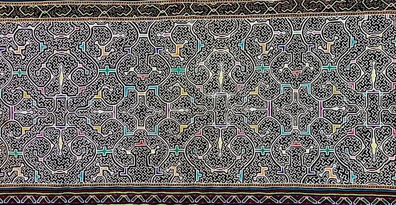 Untitled by Shipibo-Conibo people - This textile was created by endogenous people to represent ayahuasca hallucinations. It serves as an accurate portrayal of the commonly experienced psychedelic effect known as geometry.