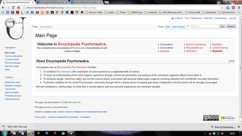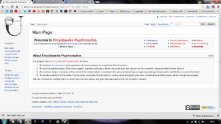 PsychonautWiki on May the 12th 2013. Less than 24 hours after its creation. As viewed through Replicatosaurus's laptop. <3
