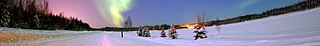 This image was selected as picture of the day on Wikimedia Commons for 1 February 2007. It was captioned as follows: English: The Aurora Borealis, or Northern Lights, shines above Bear Lake, Eielson Air Force Base, Alaska Other languages: