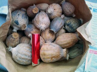 | 12:26, 5 April 2014 | No thumbnail | 1,000 × 750 (483 KB) | PJosepherum (talk | contribs) | Half a kilo of dried whole Papaver Somniferum seed pods. Lighter for scale. Used in Poppy Pod Tea guide. |