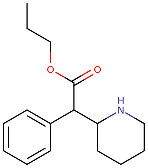Skeletal structure of a propylphenidate molecule.