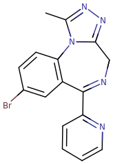 Skeletal structure of a pyrazolam molecule.