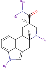 Substituted lysergamide substitutive skeletal structure.