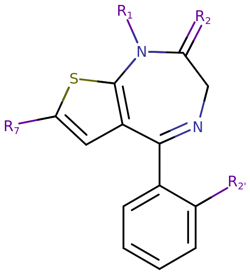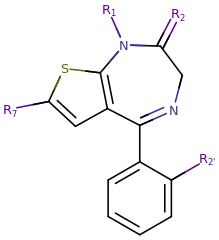 Substituted thienodiazepine substitutive skeletal structure.
