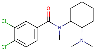 Skeletal structure of a U-47700 molecule.