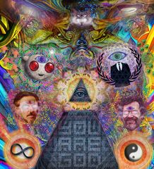 The internet's transcension - A composition piece representing the artists most significant personal influences in regards to the psychedelic experience. It was created by Josikins and made to serve as an example of psychedelic artwork