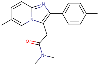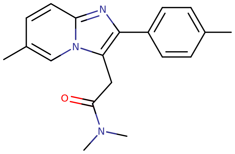 Skeletal structure of a zolpidem molecule.