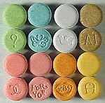 | Common names | MDMA, Molly, Mandy, Emma, MD, Ecstasy, E, X, XTC, Rolls, Beans, Pingers | ||||||||||||||||||||||||||||||||
