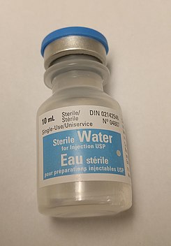 - ↑ "USP Monographs: Water for Injection". United States Pharmacopeia and the National Formulary (USP-NF) (USP38–NF33 ed.). Rockville, MD, USA: U.S. Pharmacopeial Convention. October 2014. p. 5805.